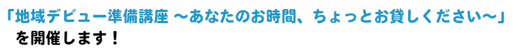 すきま時間を活かした地域デビューにむけて、現在活動している先輩方の話を聞いてみませんか。